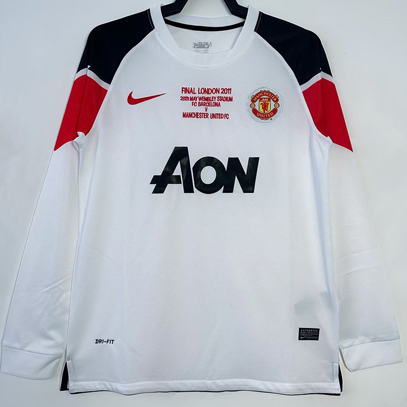 Copy| Product Name | 2010-2011 Man Utd Away White Long sleeve Retro soccer jersey (长袖) 欧冠版 |