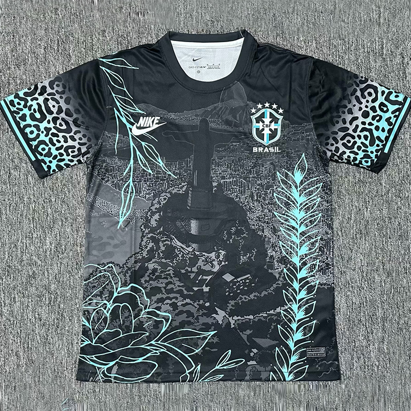 Copy| Product Name | 24-25 Brazil Black Special Edition Fans Soccer Jersey 绿花边 |