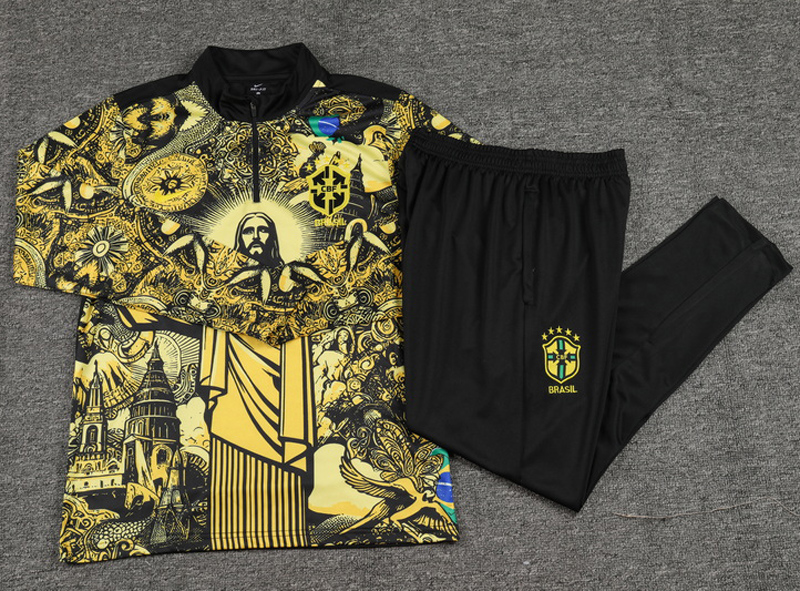 Copy| Product Name | 24-25 Brazil Yellow black Kids Half Pull Special Edition (童装)(半拉链) |