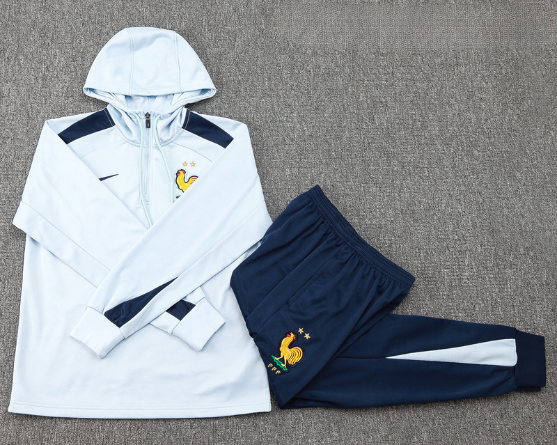 Copy| Product Name | 24-25 France Light blue Hoodie Half Pull Tracksuit #F589半拉连帽 |