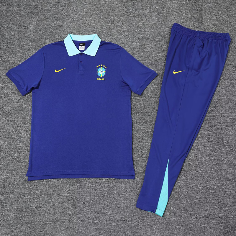 Copy| Product Name | 25-26 Brazil Fancy blue Polo Tracksuit |